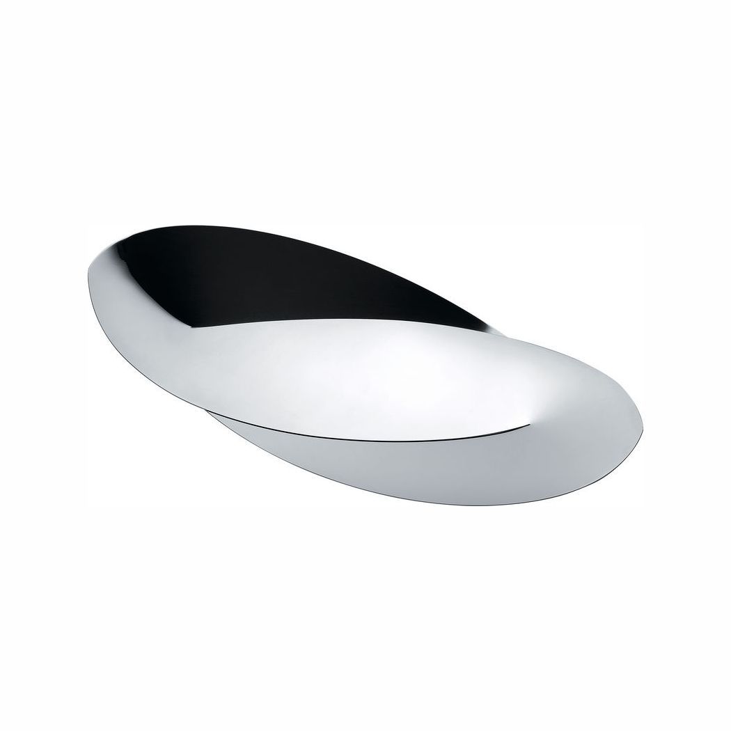“Octave” di Abi Alice è realizzato semplicemente tagliando, piegando e saldando, in più punti, una lastra d'acciaio inossidabile 18/10. Si offre come un elegante centrotavola. La finitura lucida esalta la sofisticata semplicità dell'oggetto. Questo progetto riflette l'interesse di Abi Alice per la matematica e la geometria: con “Octave” l'autrice esplora le potenzialità dell'ellisse nel creare forme armoniche e proporzionate. In musica un'ottava è l'intervallo tra un tono e l'altro. Questi nuovi oggetti sono stati creati utilizzando tale rapporto, che corrisponde a quello di un'ottava musicale: ispirazione per il nome dell'oggetto. Dimensioni: 41x17 cm