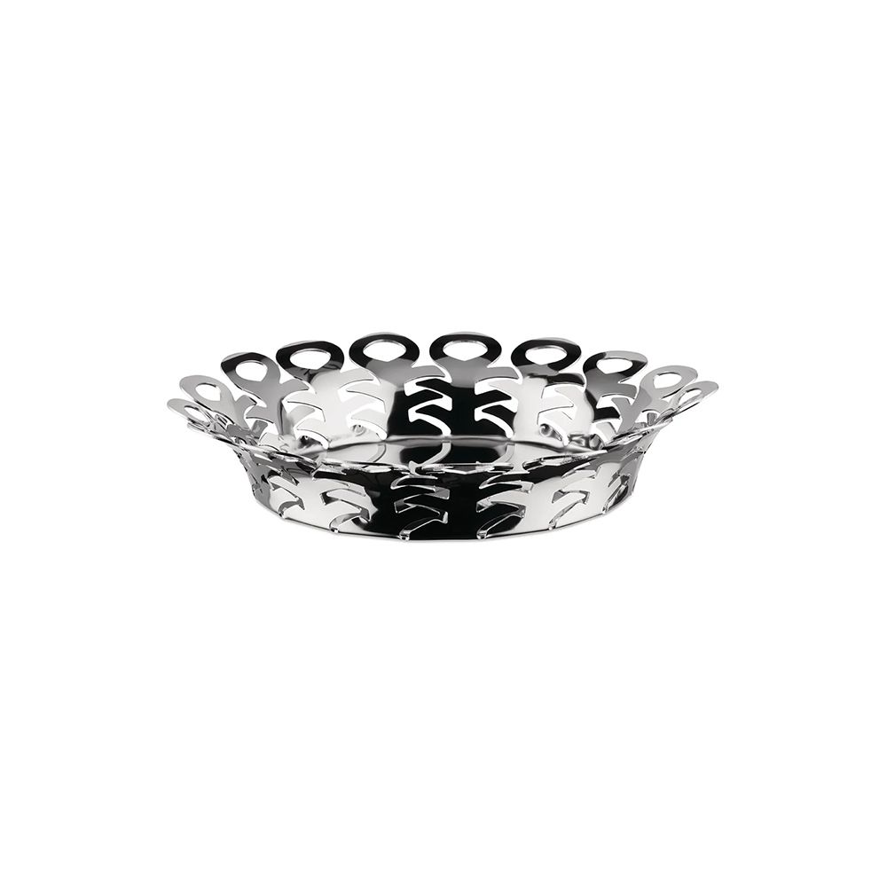 Cestino traforato in acciaio inossidabile 18/10.Diam. cm 27 h cm 5,5Ispirati dai tradizionali cestini intrecciati in vimini, Michel Boucquillon e Donia Maaoui hanno creato un oggetto inedito e originale che, al tempo stesso, evoca con grazia le forme di quegli antichi manufatti. Il cestino Vimini si distingue per un disegno raffinato: realizzato mediante un procedimento di foratura al laser della lastra d'acciaio, successivamente sagomata con una serie di passaggi meccanici, testimonia l'abilità dell'officina Alessi nella lavorazione di questo metallo.Questa collezione è dedicata a chi cerca nei prodotti di design versatilità, eleganza e costo contenuto. Prodotto interamente in acciaio, uno dei materiali più durevoli e resistenti in assoluto, ecosostenibile in tutto il proprio ciclo di vita e completamente riciclabile.