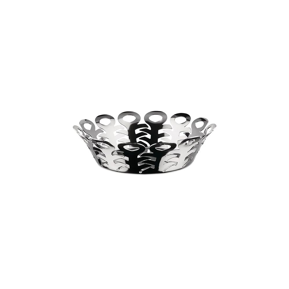 Cestino traforato in acciaio inossidabile 18/10.Diam. cm 22 h cm 6Ispirati dai tradizionali cestini intrecciati in vimini, Michel Boucquillon e Donia Maaoui hanno creato un oggetto inedito e originale che, al tempo stesso, evoca con grazia le forme di quegli antichi manufatti. Il cestino Vimini si distingue per un disegno raffinato: realizzato mediante un procedimento di foratura al laser della lastra d'acciaio, successivamente sagomata con una serie di passaggi meccanici, testimonia l'abilità dell'officina Alessi nella lavorazione di questo metallo.Questa collezione è dedicata a chi cerca nei prodotti di design versatilità, eleganza e costo contenuto. Prodotto interamente in acciaio, uno dei materiali più durevoli e resistenti in assoluto, ecosostenibile in tutto il proprio ciclo di vita e completamente riciclabile.